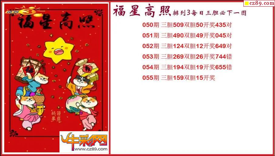> 2026055期P3福星高照每日三胆必下一图